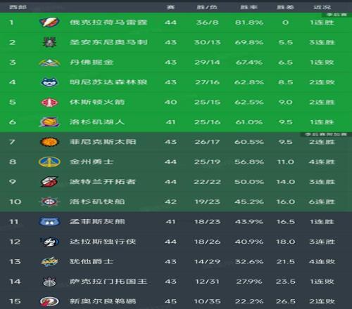 随着勇士4连胜稳居第8,快船第10,最新积分榜如下!雷霆36胜领跑